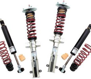 Eibach Multi Pro R1 Coilovers: These state-of-the-art, race-ready, damping-adjustable coil-overs use a monotube damper design for maximum track performance. Ride height is infinitely adjustable between 0.80″ – 2.5″ lower than stock, and the dual-spring setup is dialed for maximum cornering performance. Rebound and compression damping are both adjusted-ensuring proper damping balance at any setting. To extract maximum performance, look no further than Eibach.